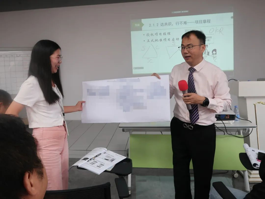 賀老師系統(tǒng)地講授了項(xiàng)目管理的基礎(chǔ)理論、基本概念、規(guī)范流程、工具模型、典型案例,通過(guò)分組討論、場(chǎng)景模擬、游戲互動(dòng)等豐富多彩的培訓(xùn)形式,強(qiáng)化了大家對(duì)相關(guān)知識(shí)點(diǎn)的理解和掌握。