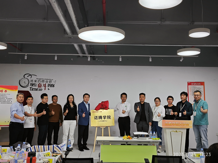 2023年11月25日,邁騰學院(人才發展中心)揭牌儀式在惠州工廠隆重舉行,公司總經理黃總和賀老師共同為邁騰學院(人才發展中心)共同揭幕。