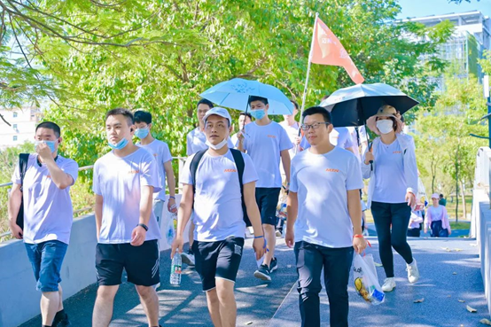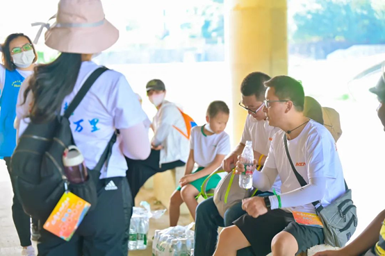 隨著行程的推進(jìn),大家體力已消耗過(guò)半,持續(xù)的行走讓大家的腿已開(kāi)始發(fā)抖,有些小伙伴行進(jìn)的速度也有了明顯下降,但大家仍然步履不停,在簽到點(diǎn)互相分享食物與水、攙扶起體力較弱的同事,徑直向目的地行進(jìn)。